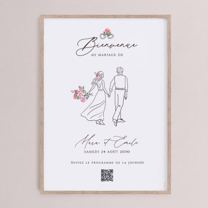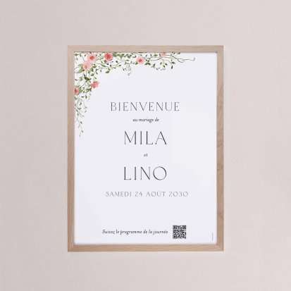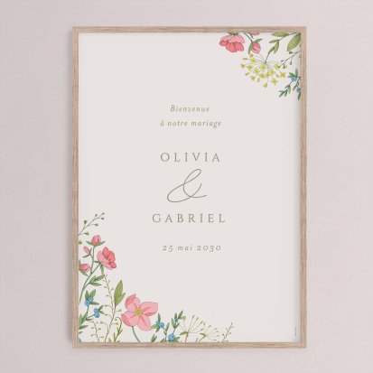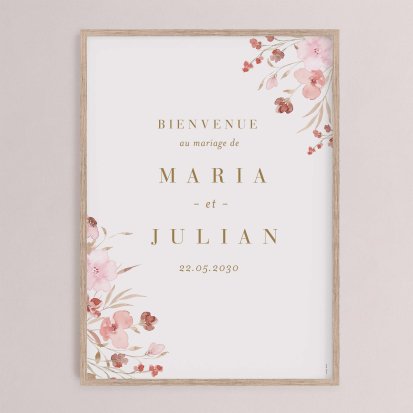 Retrouvez les panneaux de bienvenue pour un mariage de style bohème, champêtre, chic, minimaliste, nature ou encore vintage. Une jolie rose à l'aquarelle, une plante verte délicatement enroulée, une illustration originale et charmante et des couleurs chaleureuses et pastel font partie des designs les plus appréciés par les mariés. Filtrez au besoin parmi les modèles disponibles pour faire votre choix.