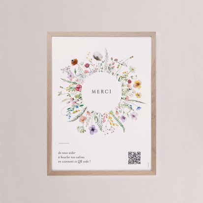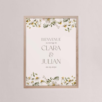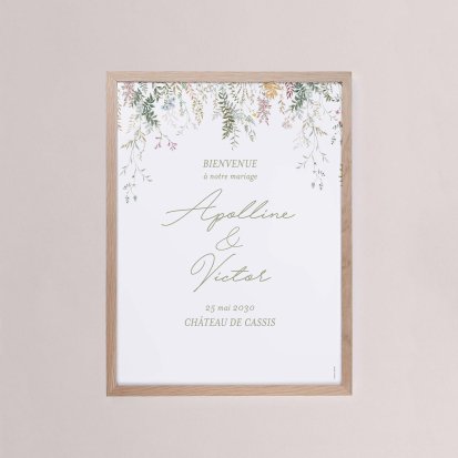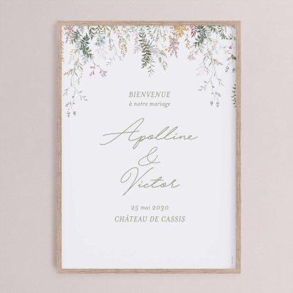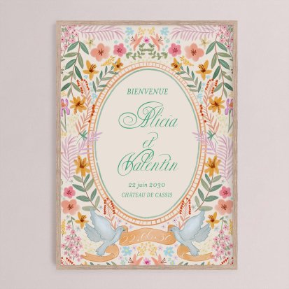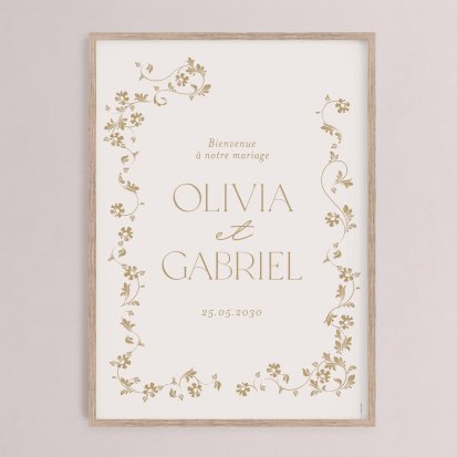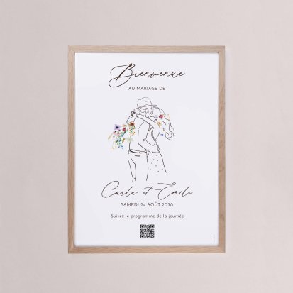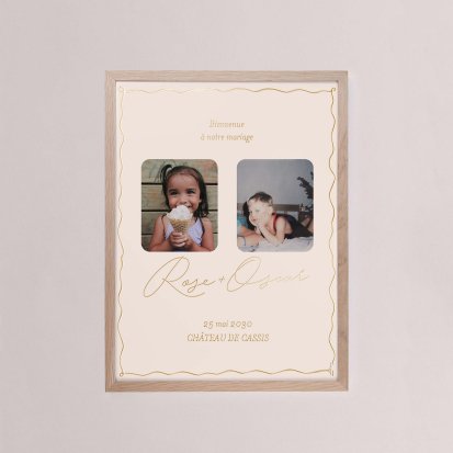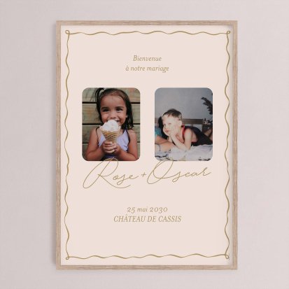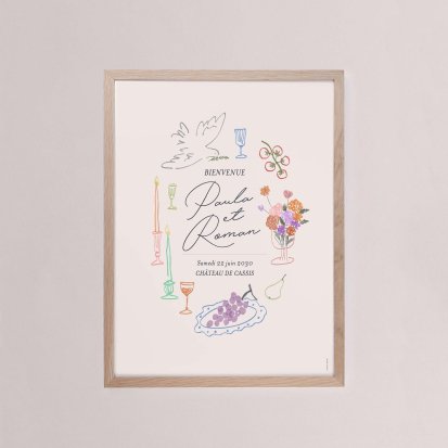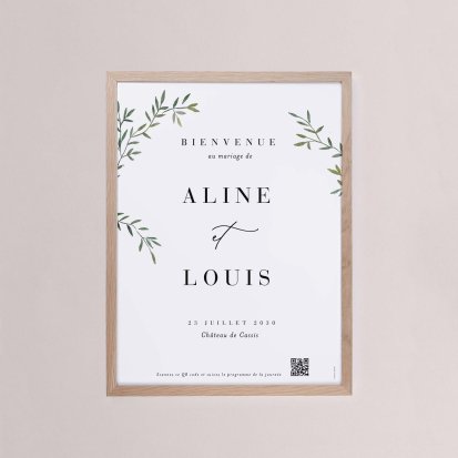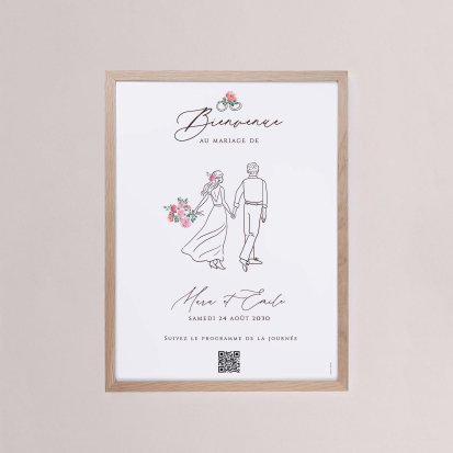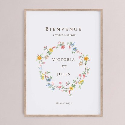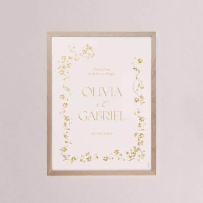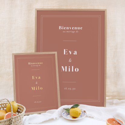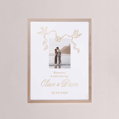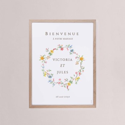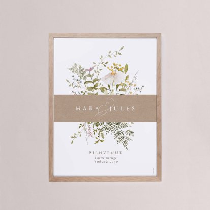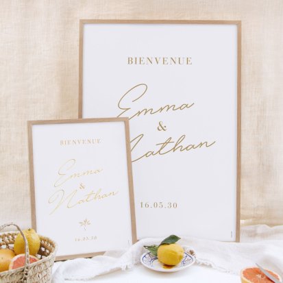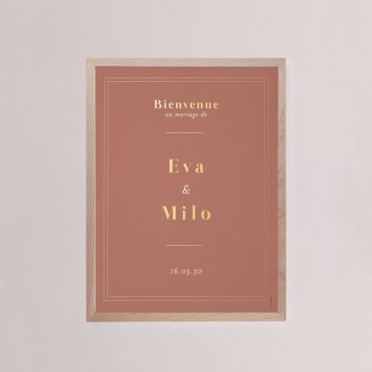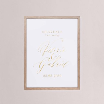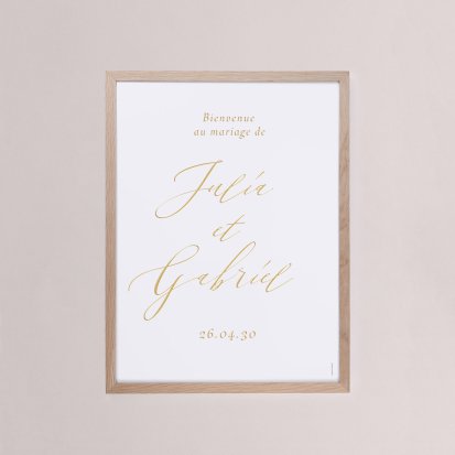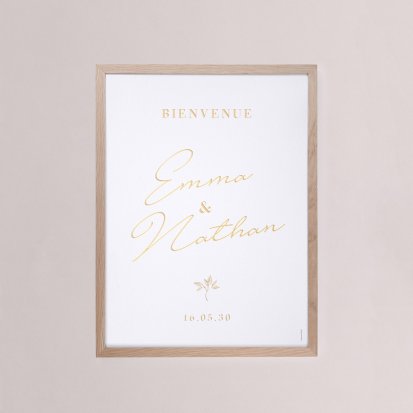 Chaque poster en papier peut être encadré par vos soins. Nous vous conseillons de privilégier soit un cadre en bois avec une face en plexiglas, soit des baguettes magnétiques en bois pour un effet vintage. Votre affiche de signalisation de mariage est ainsi joliment protégée.