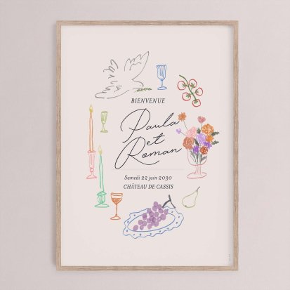 En sélectionnant un modèle de panneau de bienvenue, vous découvrez l'ensemble de la gamme assortie : faire-part de mariage, cornet de confettis ou encore livret de messe. Harmonisez tous les éléments de votre mariage grâce à notre collection de papeterie de qualité.