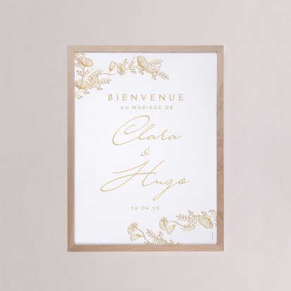 Une fois vos décorations choisies, personnalisez le texte (date, lieu, prénoms) en changeant la police de caractère, la couleur du message ou son emplacement sur le panneau. Optez pour une dorure délicate pour une déco champêtre ou à une belle calligraphie noire pour un mariage minimaliste.