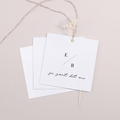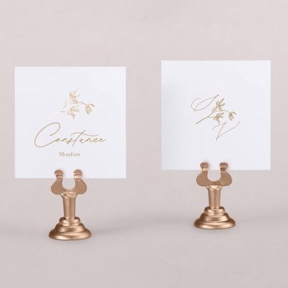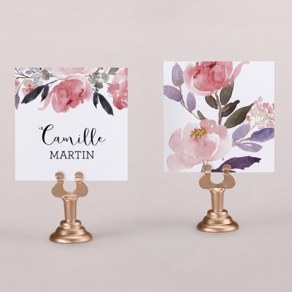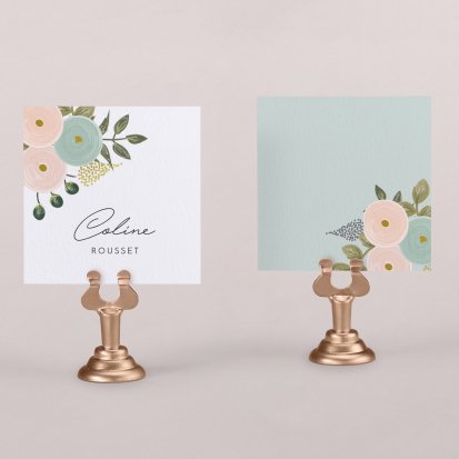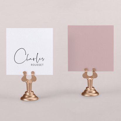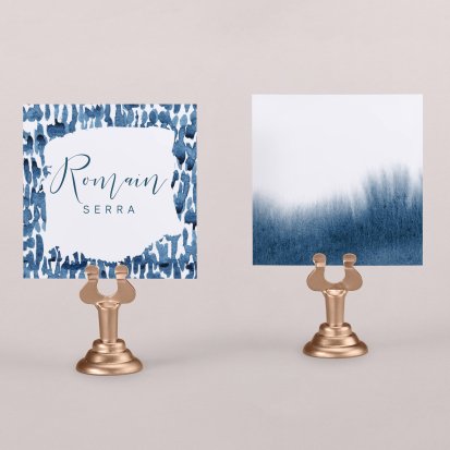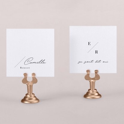 Indiquez joliment leur place à vos convives avec un marque-place mariage personnalisé. Posez-le sur la serviette ou glissez-le sur un élément de décoration !
