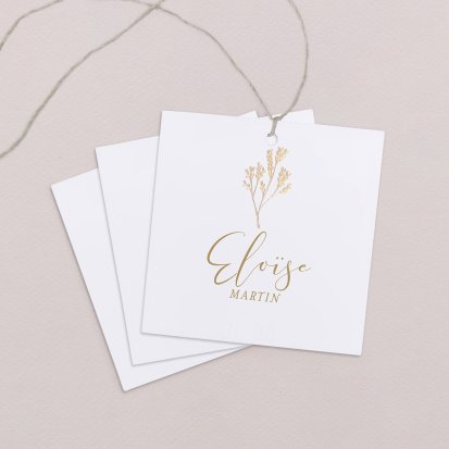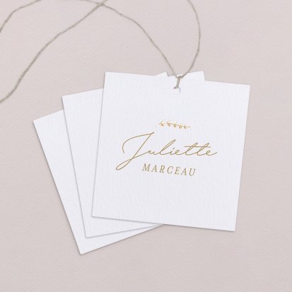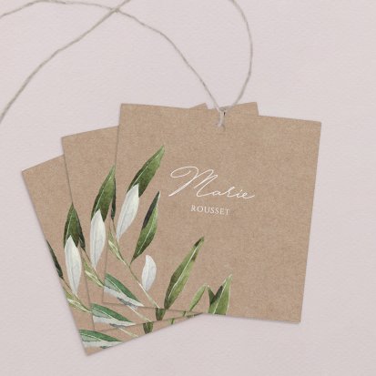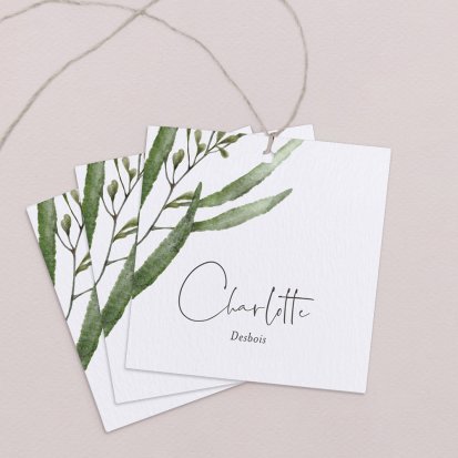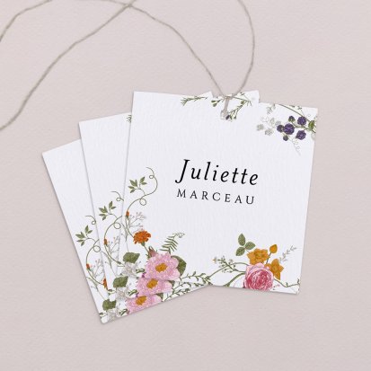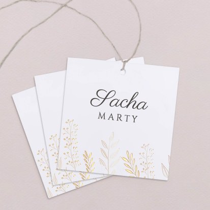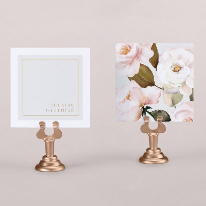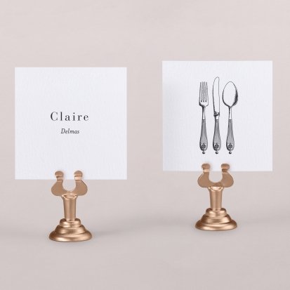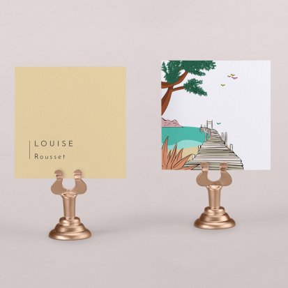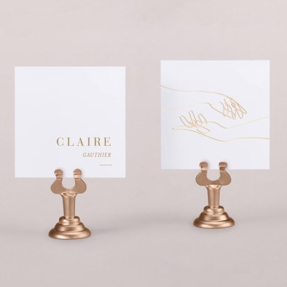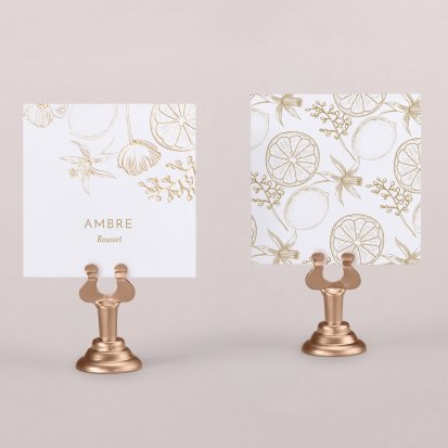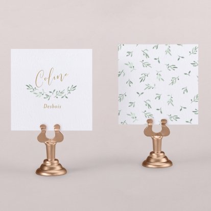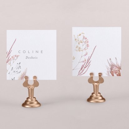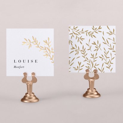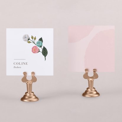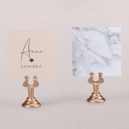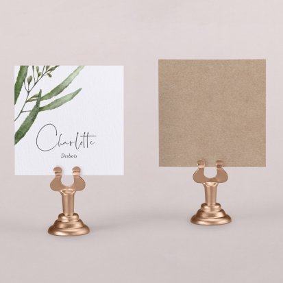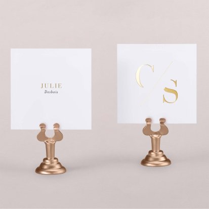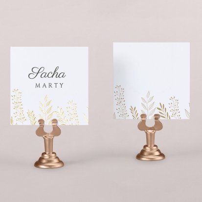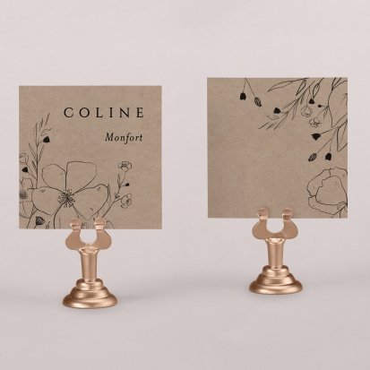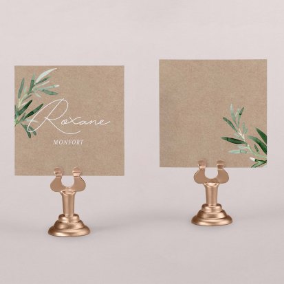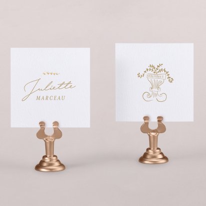Indiquez joliment leur place à vos convives avec un marque-place mariage personnalisé. Posez-le sur la serviette ou glissez-le sur un élément de décoration !