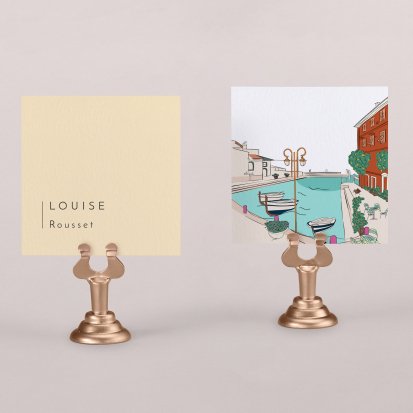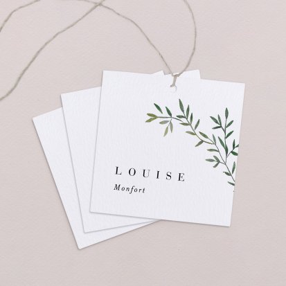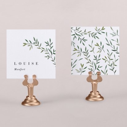Indiquez joliment leur place à vos convives avec un marque-place mariage personnalisé. Posez-le sur la serviette ou glissez-le sur un élément de décoration !