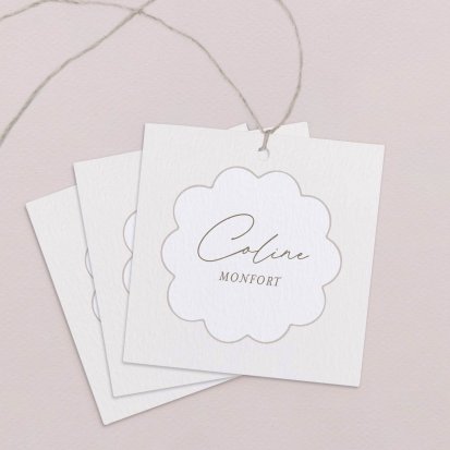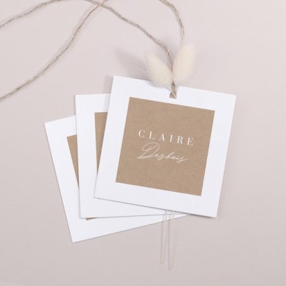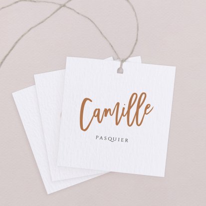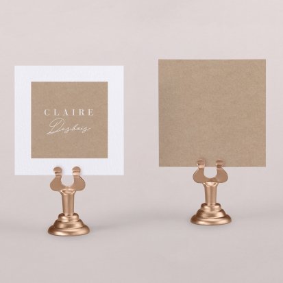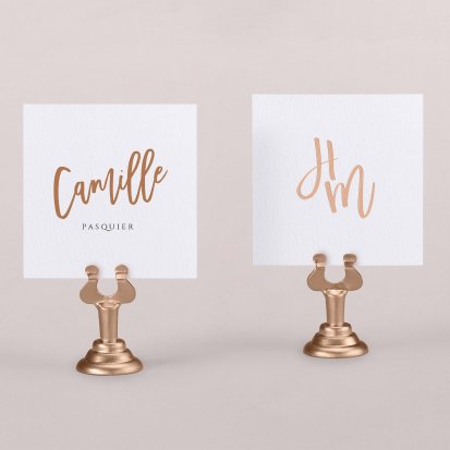 Indiquez joliment leur place à vos convives avec un marque-place mariage personnalisé. Posez-le sur la serviette ou glissez-le sur un élément de décoration !
