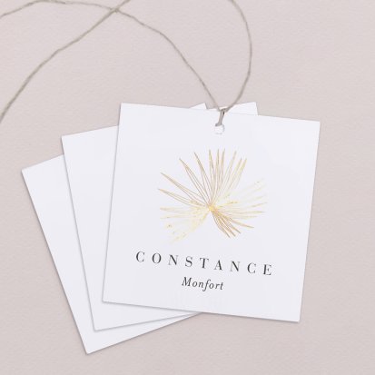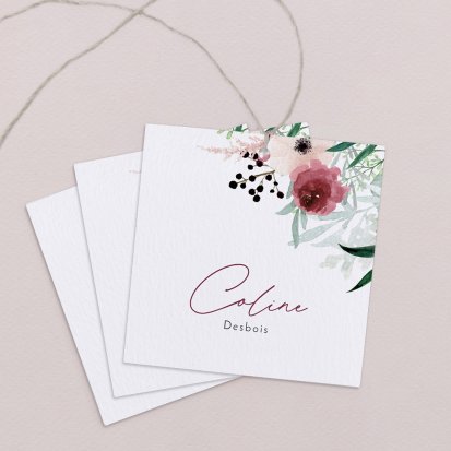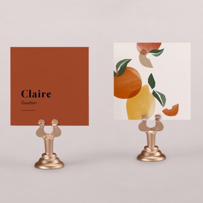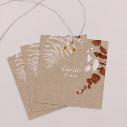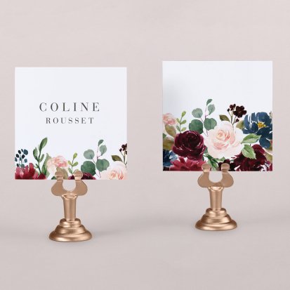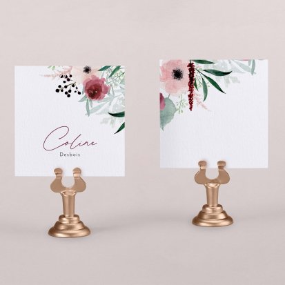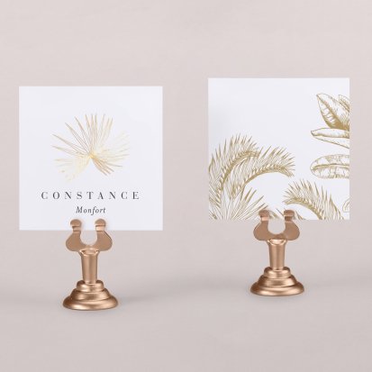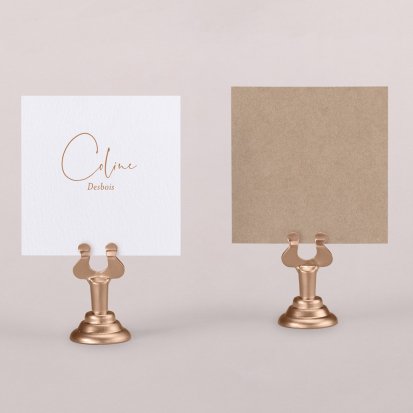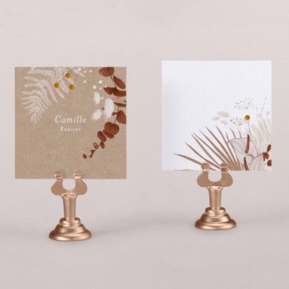 Indiquez joliment leur place à vos convives avec un marque-place mariage personnalisé. Posez-le sur la serviette ou glissez-le sur un élément de décoration !