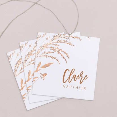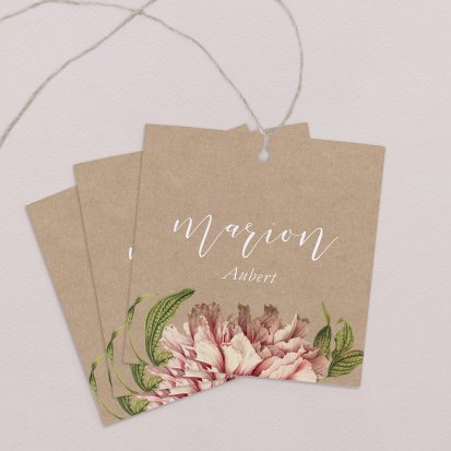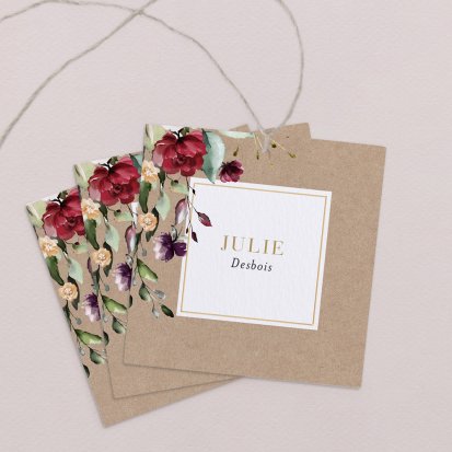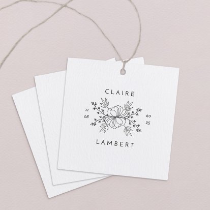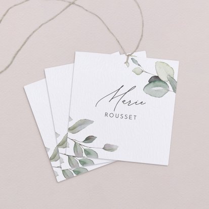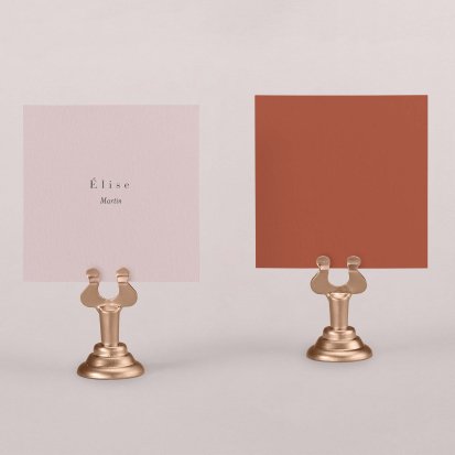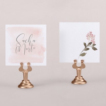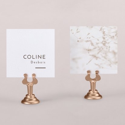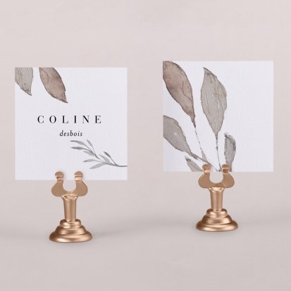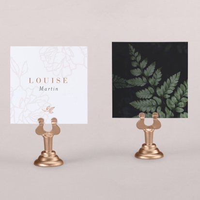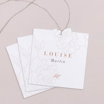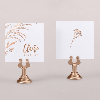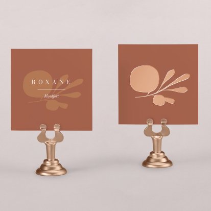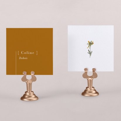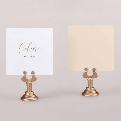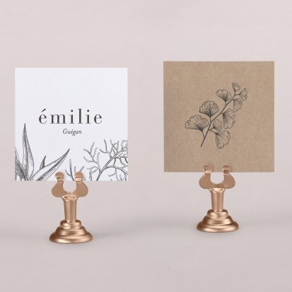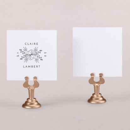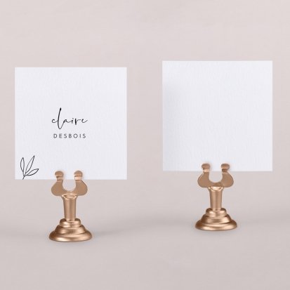 Indiquez joliment leur place à vos convives avec un marque-place mariage personnalisé. Posez-le sur la serviette ou glissez-le sur un élément de décoration !