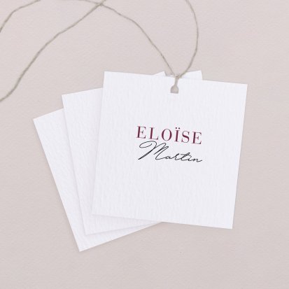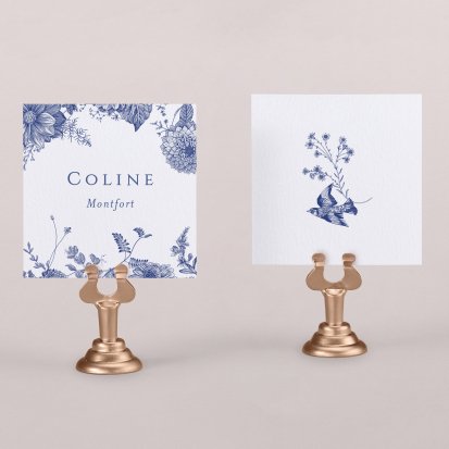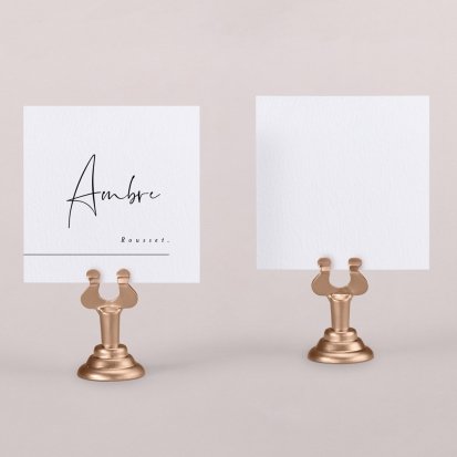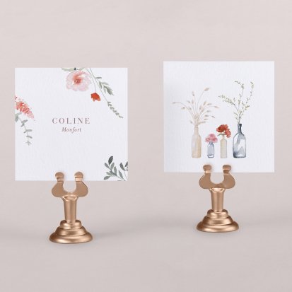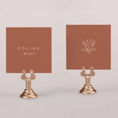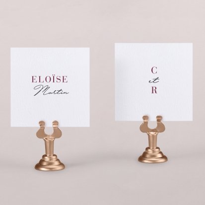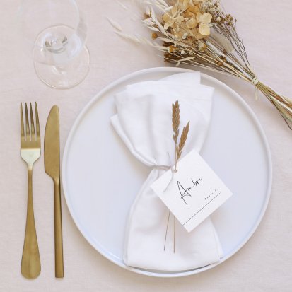 Indiquez joliment leur place à vos convives avec un marque-place mariage personnalisé. Posez-le sur la serviette ou glissez-le sur un élément de décoration !