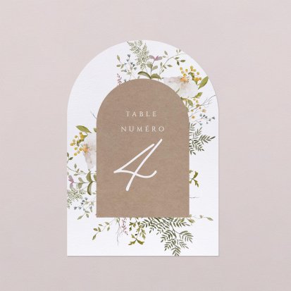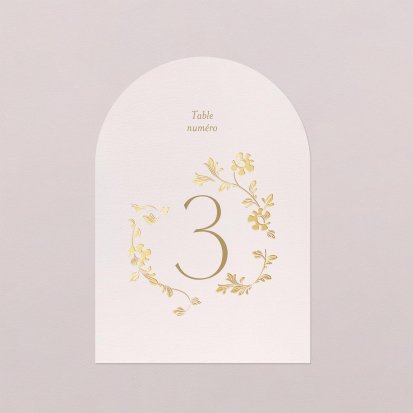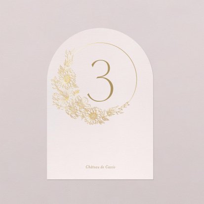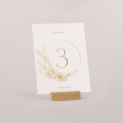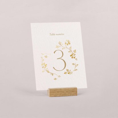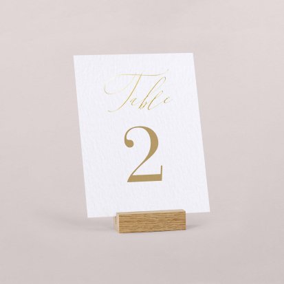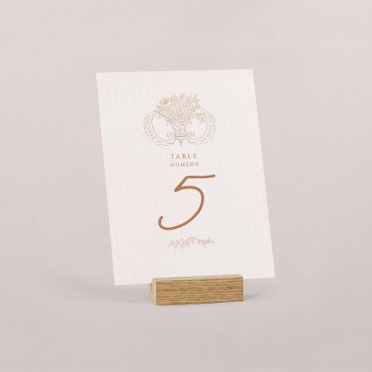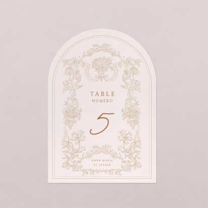 Pour apporter une note chic à votre décoration, optez pour un numéro de table orné de délicates finitions dorées, argentées, cuivrées ou encore vernis. Si ces finitions peuvent augmenter légèrement le coût de votre papeterie, elles ajouteront une touche élégante certaine et seront parfaites pour des thèmes de mariage chics.