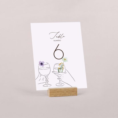Traditionnellement, le numéro de table se place sur chaque table dans la salle de réception. S’il peut être tout simplement posé sans artifices, l’attention que vous lui porterez contribuera pleinement à votre décoration de table.