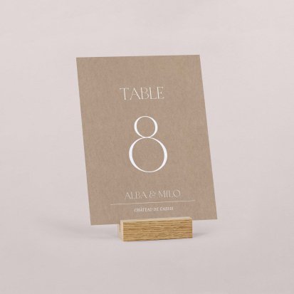 La taille de cet élément de papeterie doit être pensée en fonction de la taille de vos tables et de votre décoration. En règle générale, les numéros de table rectangulaires sont de 11 x 15 cm.