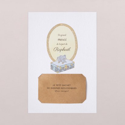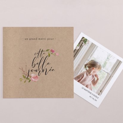Cette papeterie a une seconde fonction, celle de cadeau. En effet, personnalisée avec un petit mot et une jolie photo, elle constitue aussi un souvenir de baptême à conserver par vos proches.