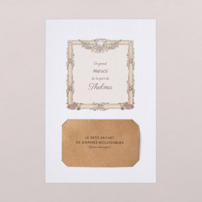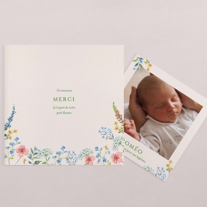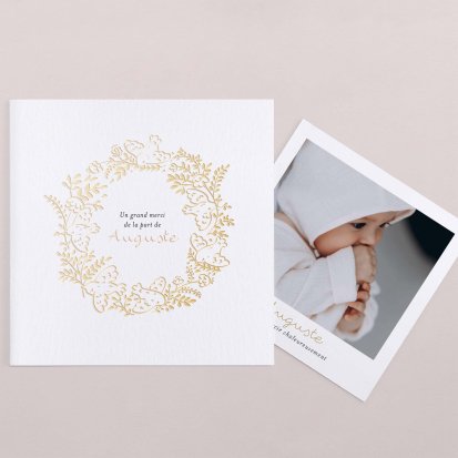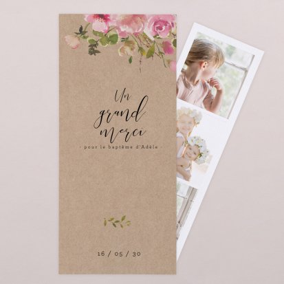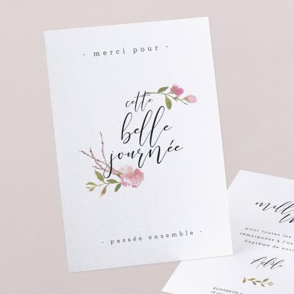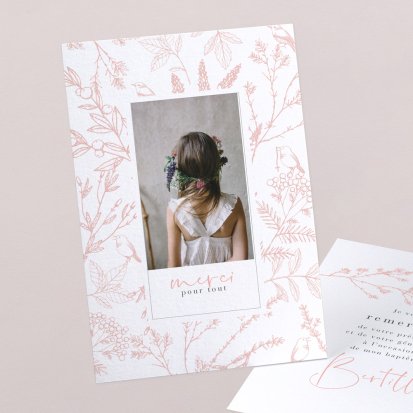 Si le baptême de votre enfant s’est déroulé à la campagne, vous pouvez choisir des remerciements dans un thème champêtre, ornés de motifs végétaux.