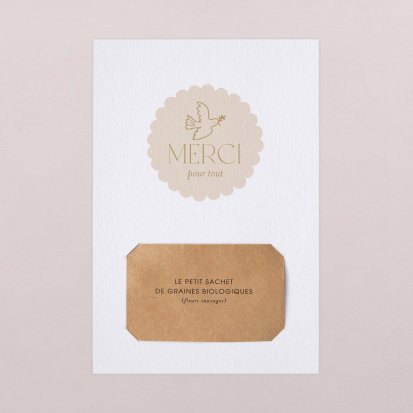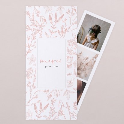 Cette carte permet tout d’abord de remercier vos invités pour leur présence, mais aussi pour leurs cadeaux et attentions le jour J.