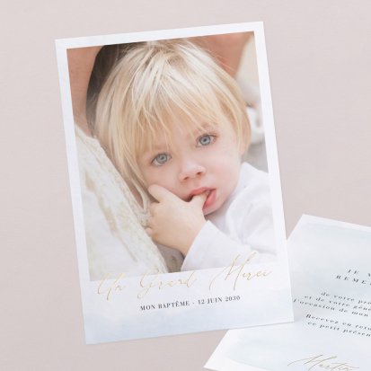 Vos proches vous ont comblé de cadeaux, d'attentions et d'amour... En retour, envoyez-leur une jolie carte de remerciements baptême personnalisée. Laissez-vous inspirer par notre collection !
