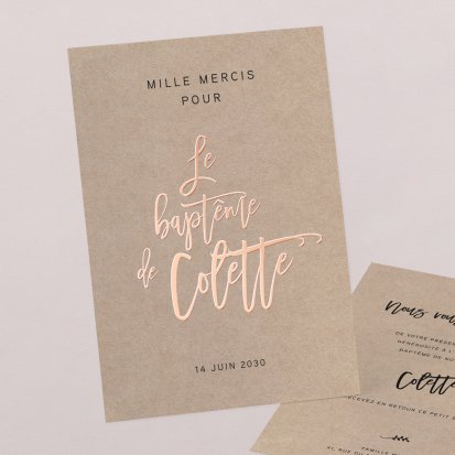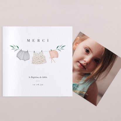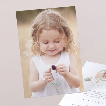 Vos proches vous ont comblé de cadeaux, d'attentions et d'amour... En retour, envoyez-leur une jolie carte de remerciements baptême personnalisée. Laissez-vous inspirer par notre collection !