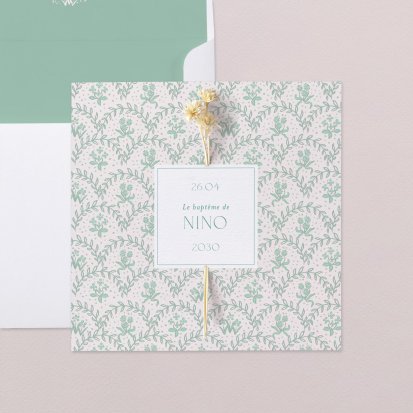 Vous avez décidé de faire baptiser votre bébé à l'église ou à la mairie. La cérémonie civile ou religieuse aura lieu avec l'ensemble de vos proches. Ensemble, vous allez vivre un moment important dans l'évolution de votre garçon. Symbolisez ce baptême avec un faire-part Cotton Bird. Vos proches conserveront précieusement ce carton d'invitation chez eux jusqu'à la date prévue du baptême.