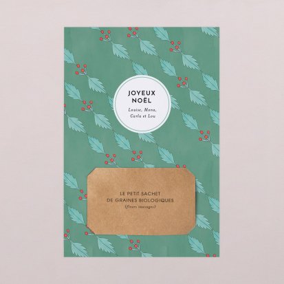 Enchantez vos proches cette année, grâce à cette carte de vœux avec graines à planter. Recyclable et biodégradable, cette création inédite est accompagnée d’un sachet de graines de fleurs sauvages biologiques. Une jolie invitation à planter et à faire fleurir de précieux souvenirs.