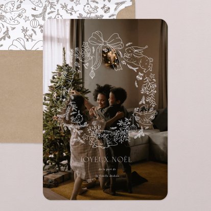 Touchez le cœur de ceux que vous aimez avec une carte de vœux personnalisée ! Comme chaque année, notre atelier a imaginé une collection de cartes de Noël et de Nouvelle année ornées d’adorables illustrations de saison et de dorures festives. Des créations qui partageront avec tendresse le portrait de votre petit lutin préféré, ou de toute votre tribu réunie !