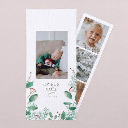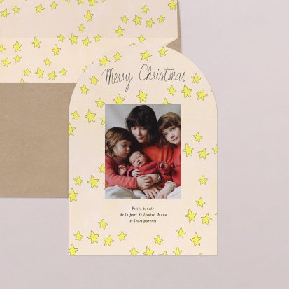 Touchez le cœur de ceux que vous aimez avec une carte de vœux personnalisée ! Comme chaque année, notre atelier a imaginé une collection de cartes de Noël et de Nouvelle année ornées d’adorables illustrations de saison et de dorures festives. Des créations qui partageront avec tendresse le portrait de votre petit lutin préféré, ou de toute votre tribu réunie !