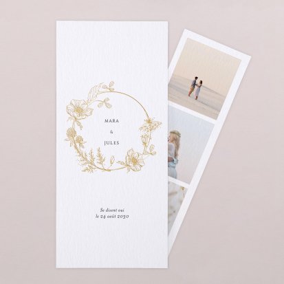 Le format du faire-part peut également être une piste à explorer. Si vous souhaitez rester classique, un faire-part de mariage au format portrait ou paysage vous conviendra sans doute parfaitement.