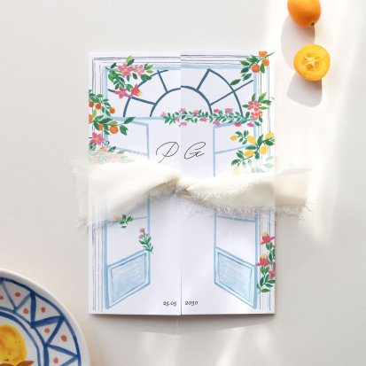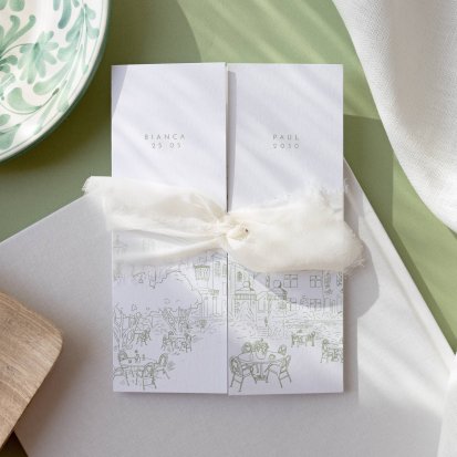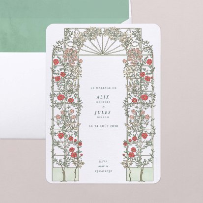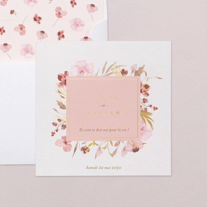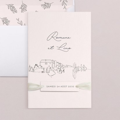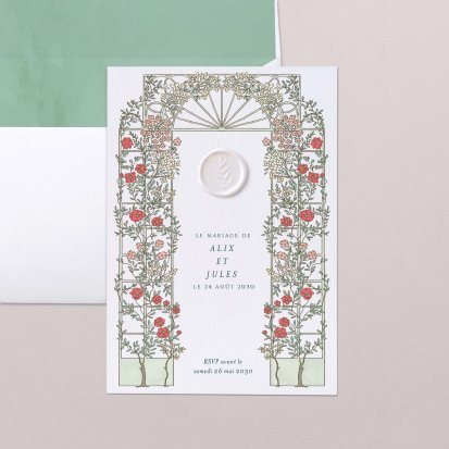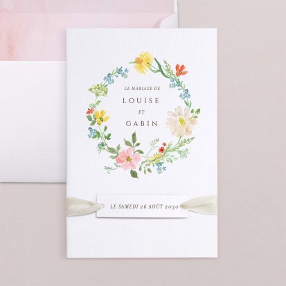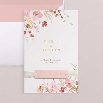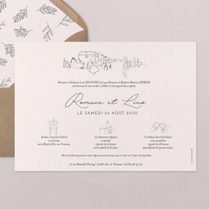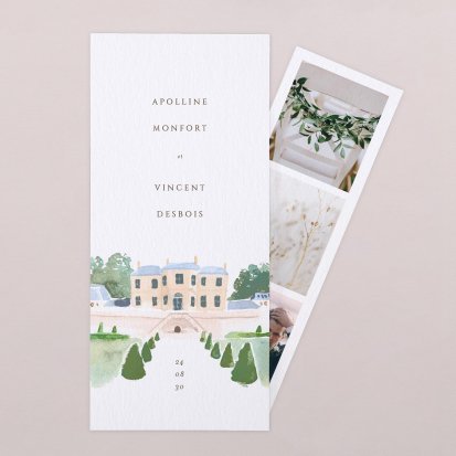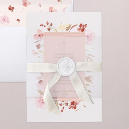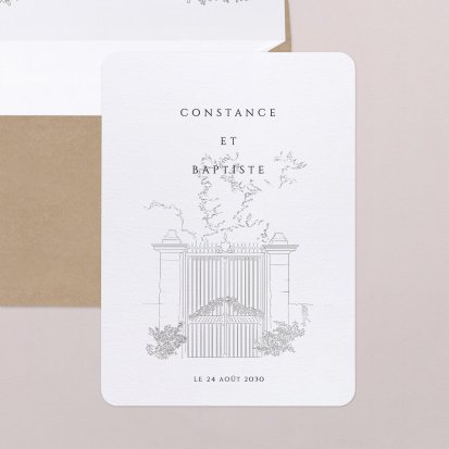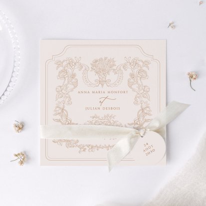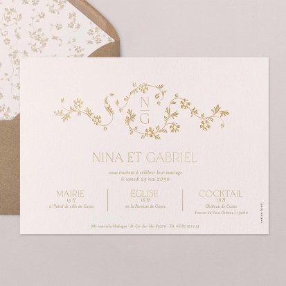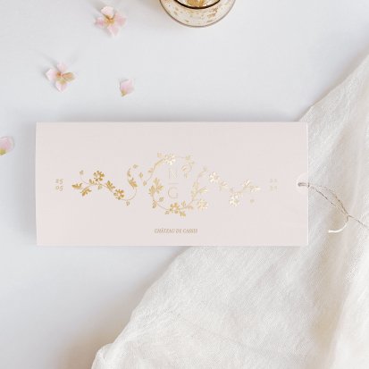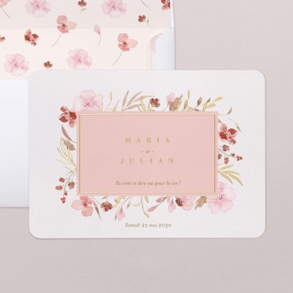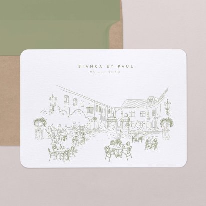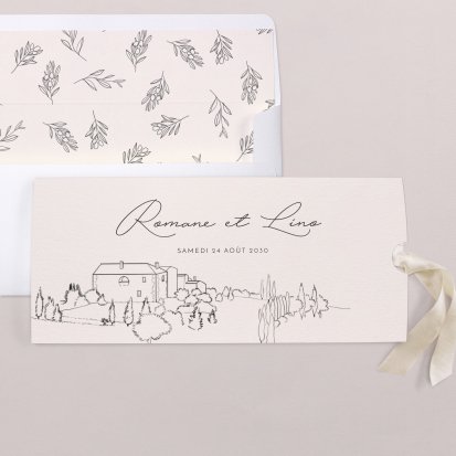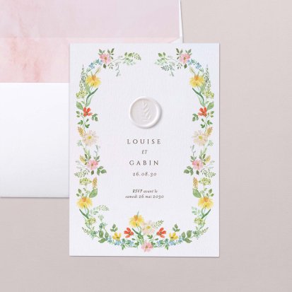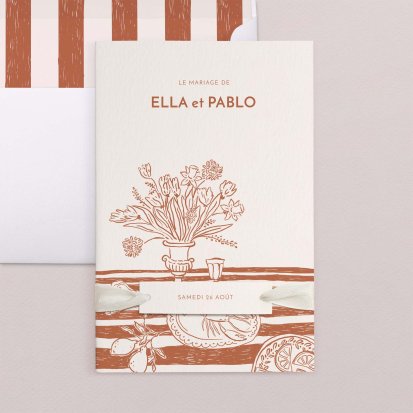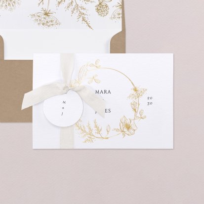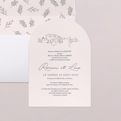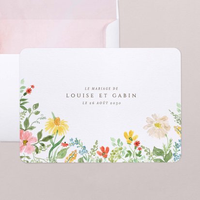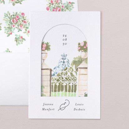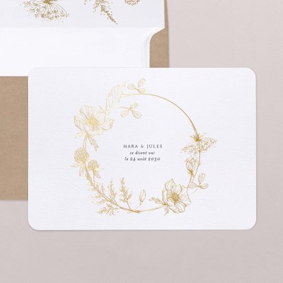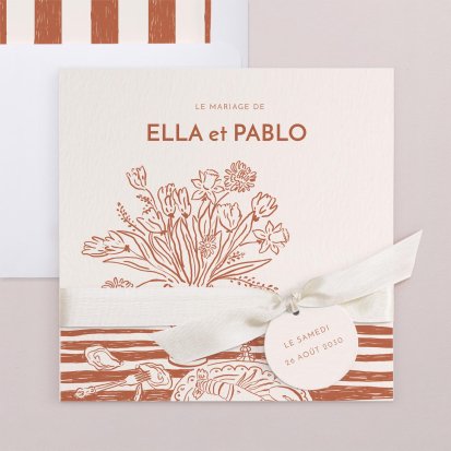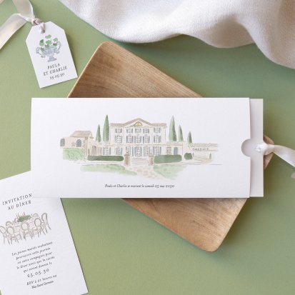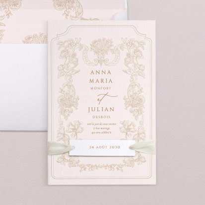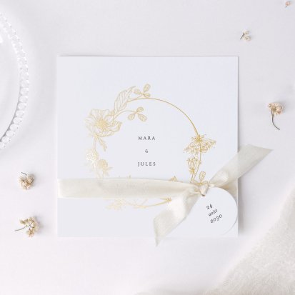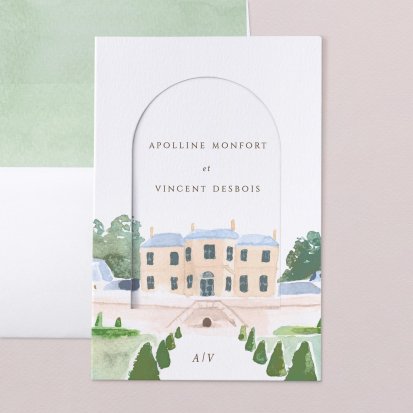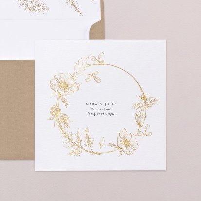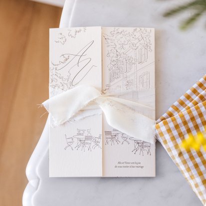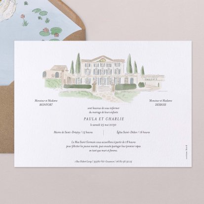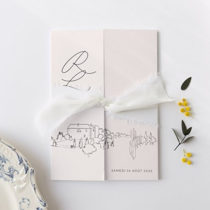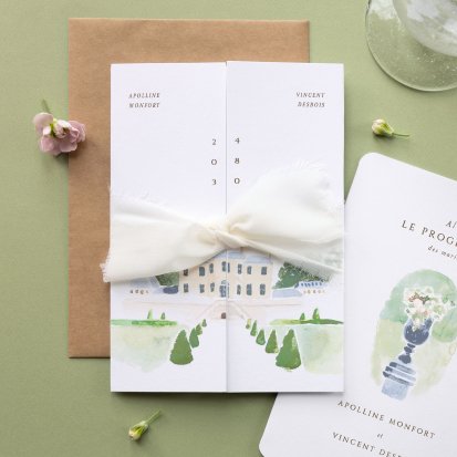 Bien choisi, le faire-part peut également donner un aperçu de votre célébration à venir ! Une création esquissée en hommage à votre lieu de mariage, dans la même palette de couleurs que celle de votre future décoration, ornée de fleurs pour un mariage nature, dorée et avec un ruban pour une union chic, à la Bridgerton…