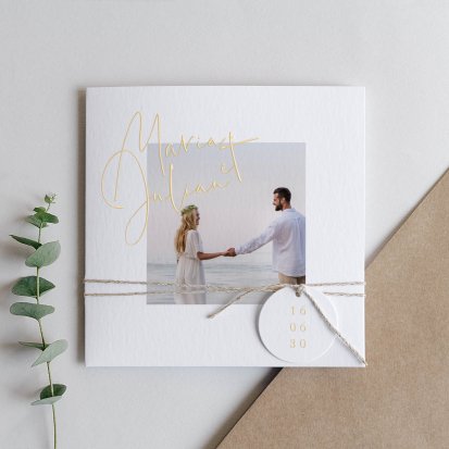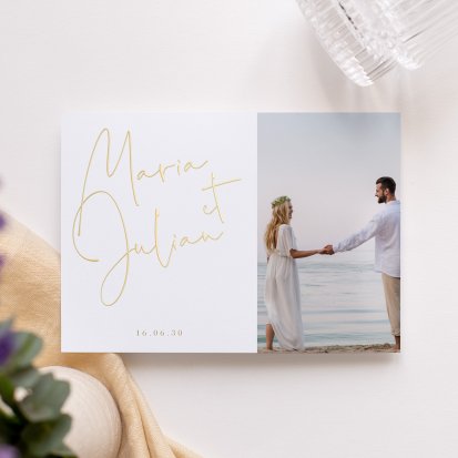 Pour vous inspirer, explorez notre collection de faire-part de mariage avec photo.