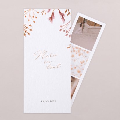 Concluez votre union sur une note d'émotion grâce à la carte de remerciement mariage.