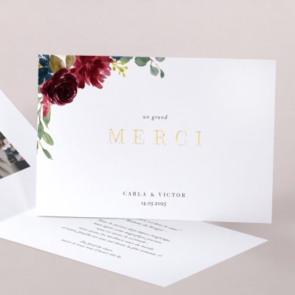 Concluez votre union sur une note d'émotion grâce à la carte de remerciement mariage.