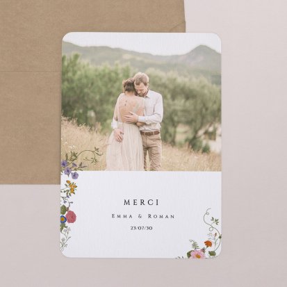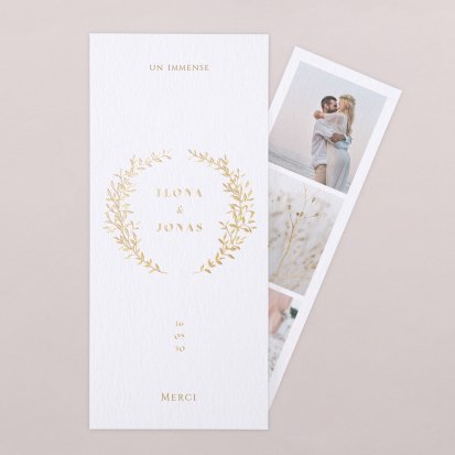 Concluez votre union sur une note d'émotion grâce à la carte de remerciement mariage.