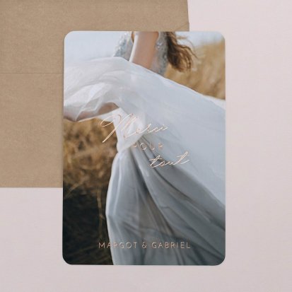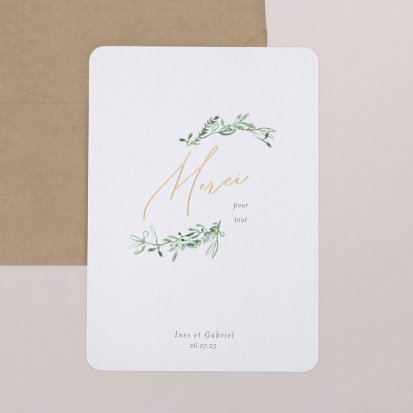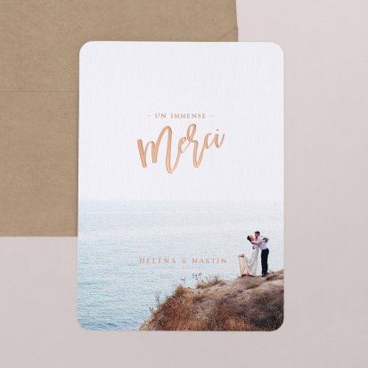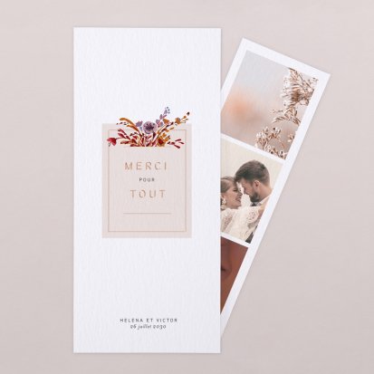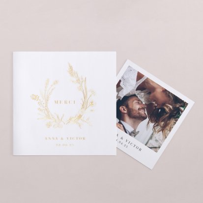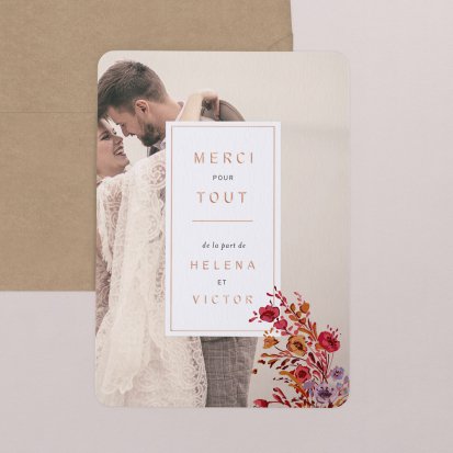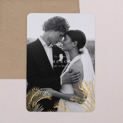 Concluez votre union sur une note d'émotion grâce à la carte de remerciement mariage.