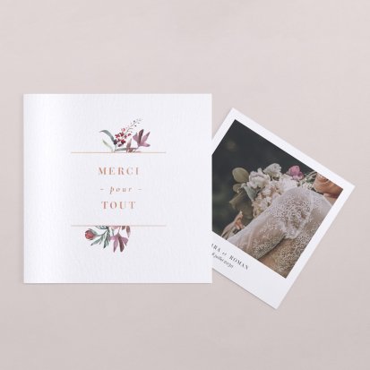 Concluez votre union sur une note d'émotion grâce à la carte de remerciement mariage.