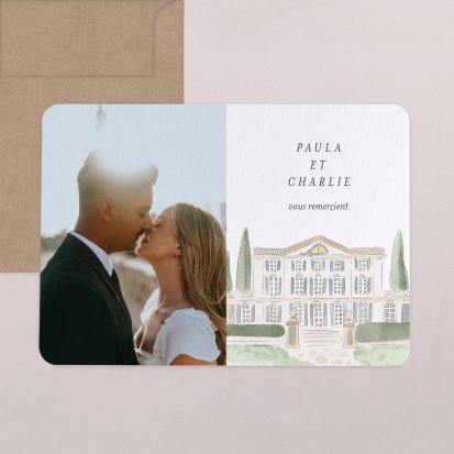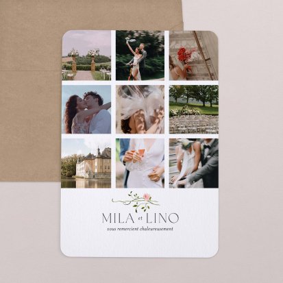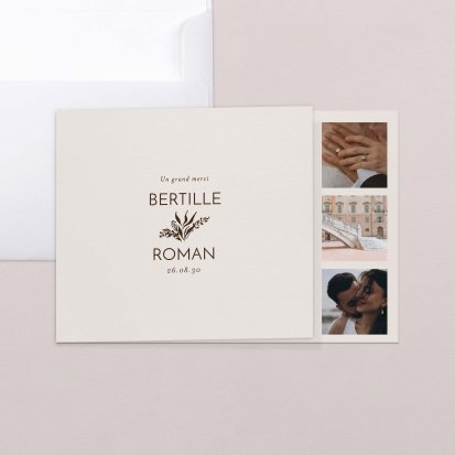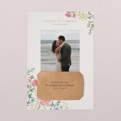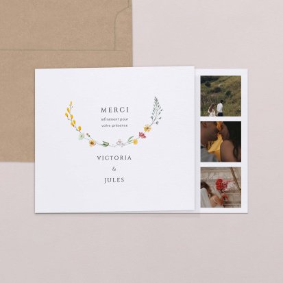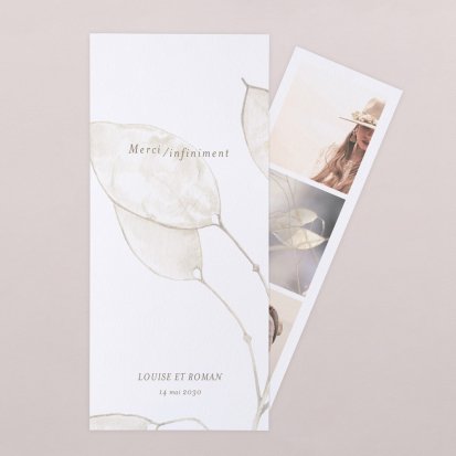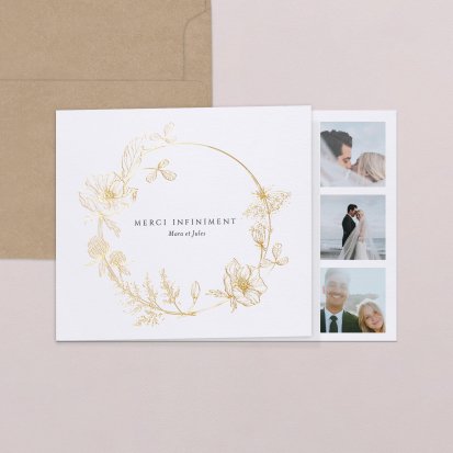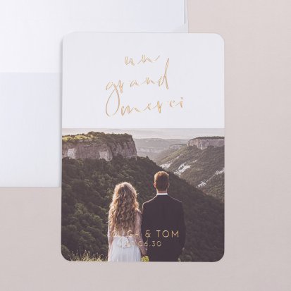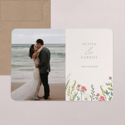 Concluez votre union sur une note d'émotion grâce à la carte de remerciement mariage.