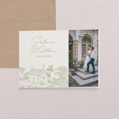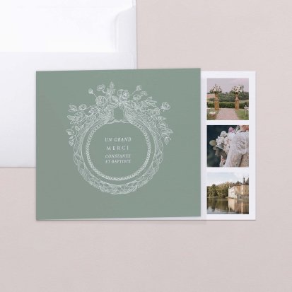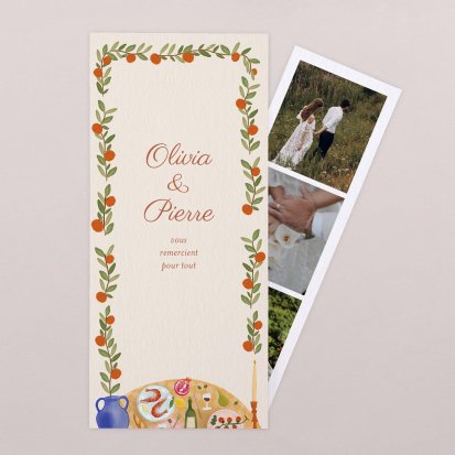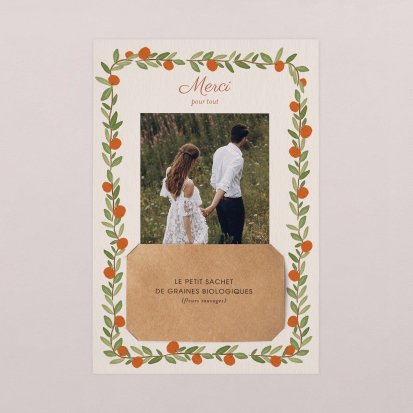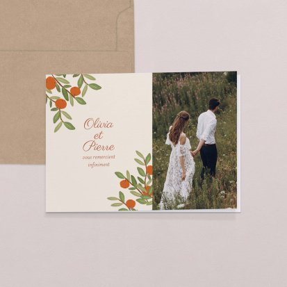 Concluez votre union sur une note d'émotion grâce à la carte de remerciement mariage.