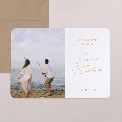 Concluez votre union sur une note d'émotion grâce à la carte de remerciement mariage.