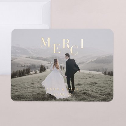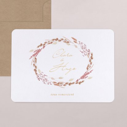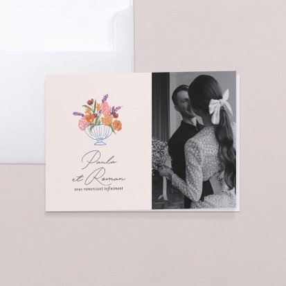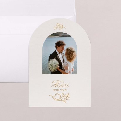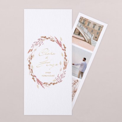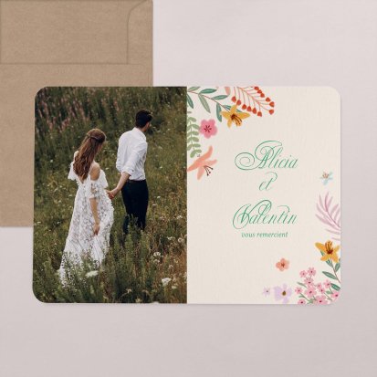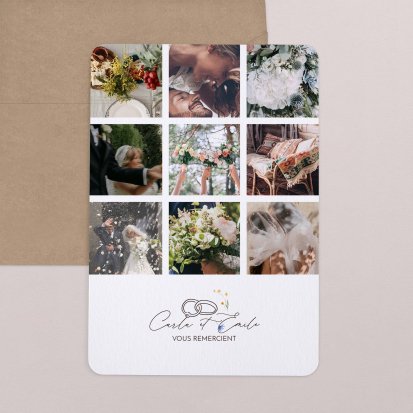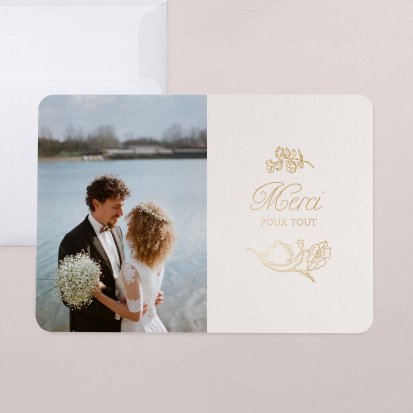 Concluez votre union sur une note d'émotion grâce à la carte de remerciement mariage.