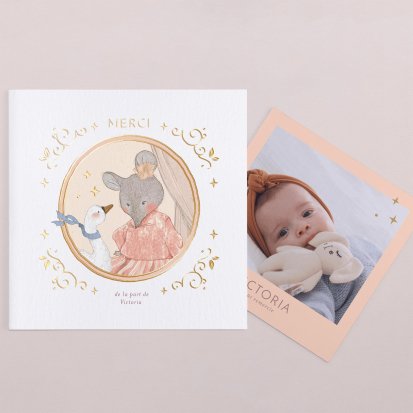 Remerciez vos proches avec une carte pleine de tendresse, pour leur présence et leur soutien tout au long des premiers instants de bébé. Une attention simple et élégante qui saura exprimer vos émotions avec délicatesse.