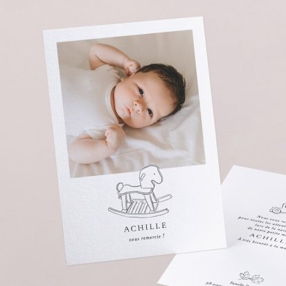Remerciez vos proches avec une carte pleine de tendresse, pour leur présence et leur soutien tout au long des premiers instants de bébé. Une attention simple et élégante qui saura exprimer vos émotions avec délicatesse.