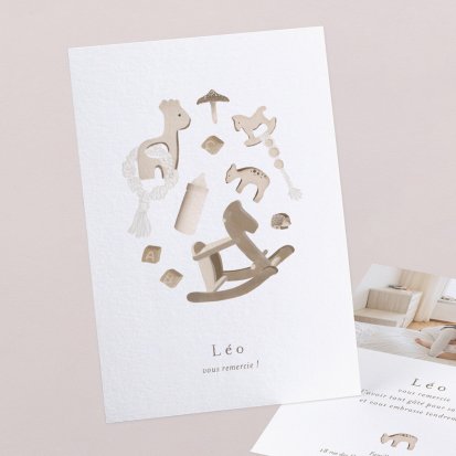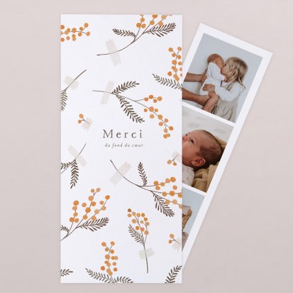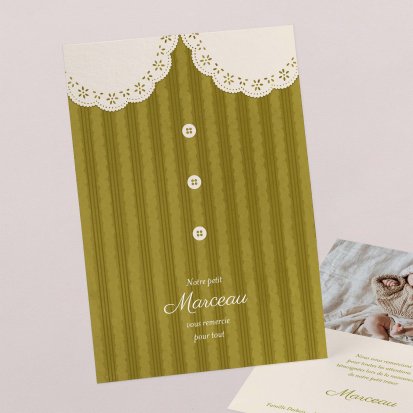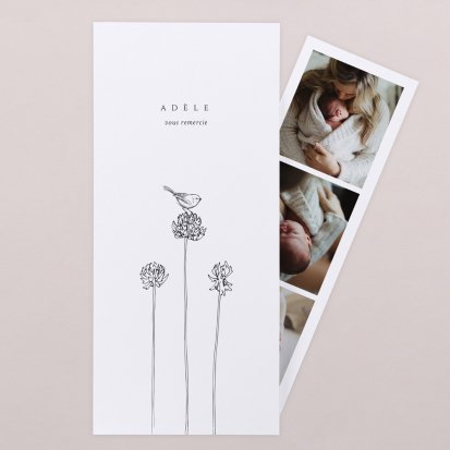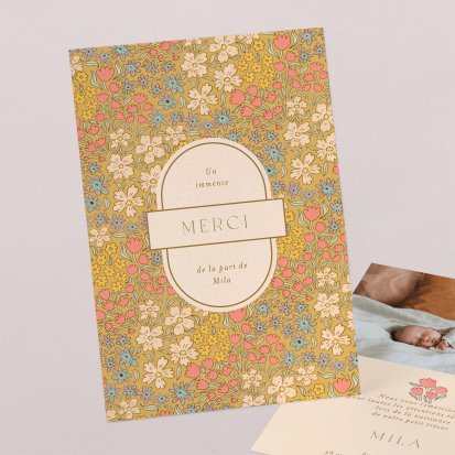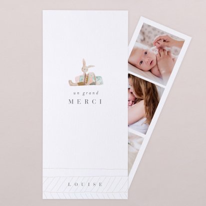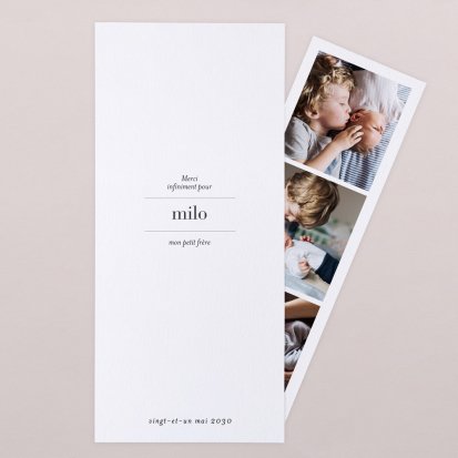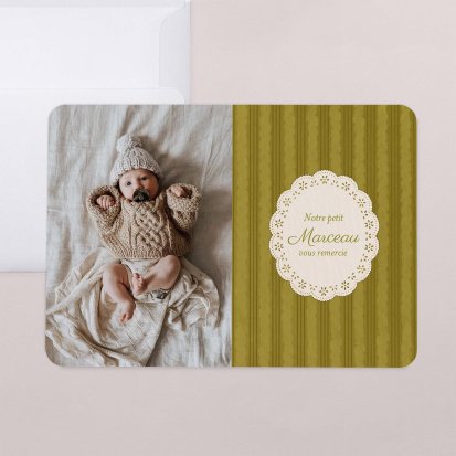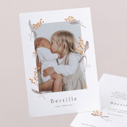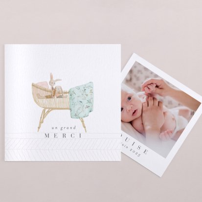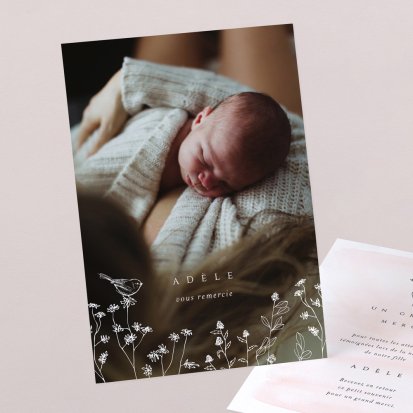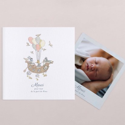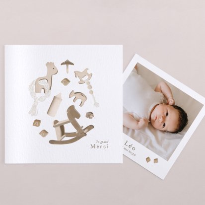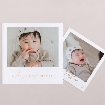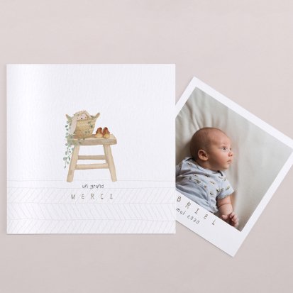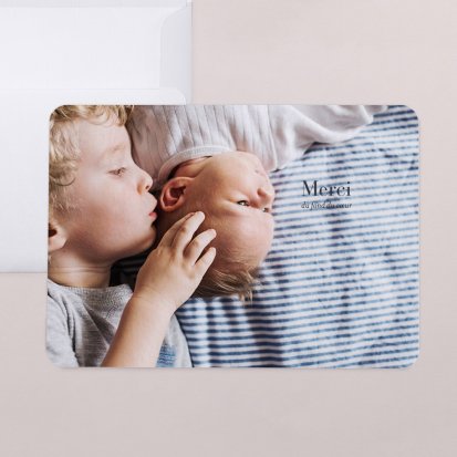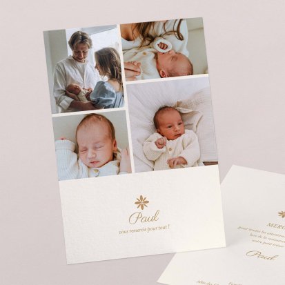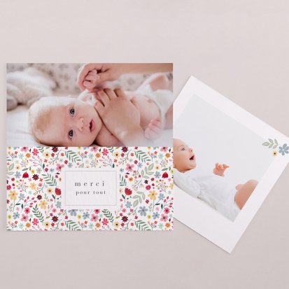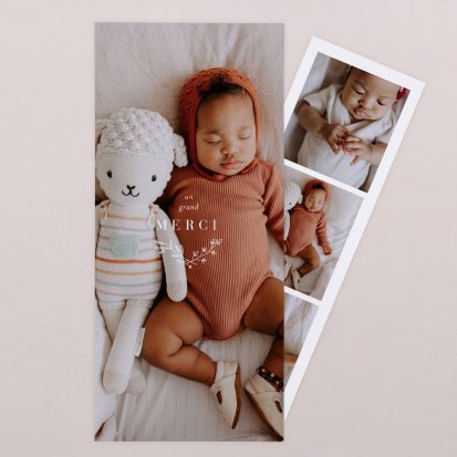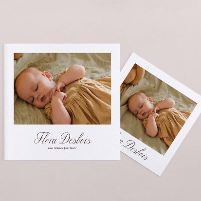 Remerciez vos proches avec une carte pleine de tendresse, pour leur présence et leur soutien tout au long des premiers instants de bébé. Une attention simple et élégante qui saura exprimer vos émotions avec délicatesse.