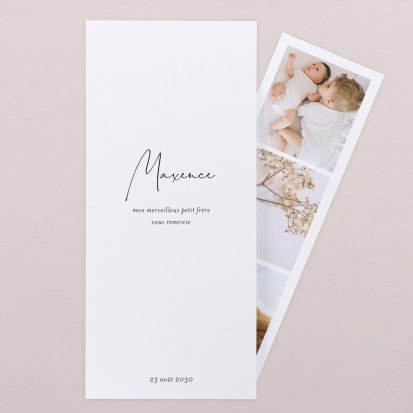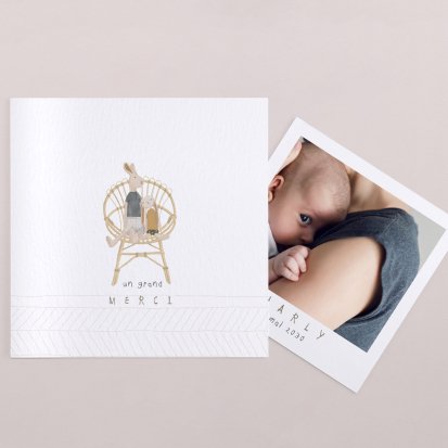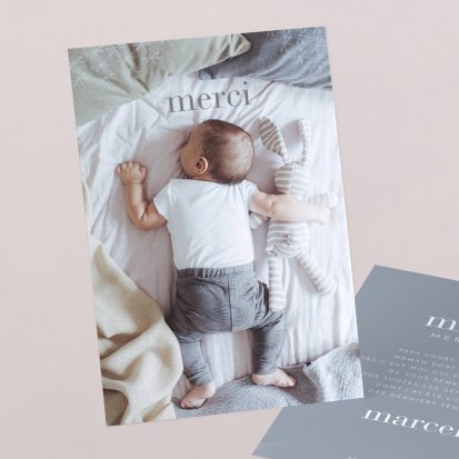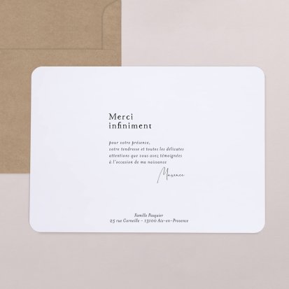 Remerciez vos proches avec une carte pleine de tendresse, pour leur présence et leur soutien tout au long des premiers instants de bébé. Une attention simple et élégante qui saura exprimer vos émotions avec délicatesse.