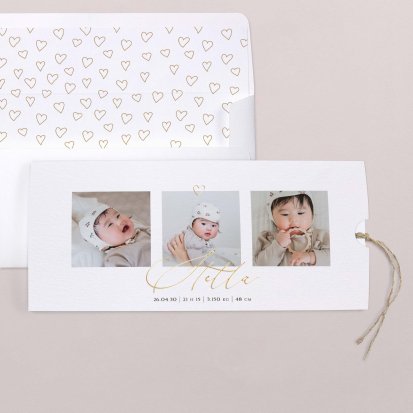 Nous vous proposons de personnaliser votre faire-part pour que vous puissiez obtenir un résultat unique. Non seulement, vous pourrez modifier les informations (prénom, date de naissance, taille et poids à l'accouchement), mais aussi ajouter votre propre texte. Votre bébé n'aura jamais le même faire-part de naissance qu'un autre enfant grâce à la personnalisation de la papeterie Cotton Bird.