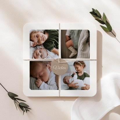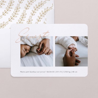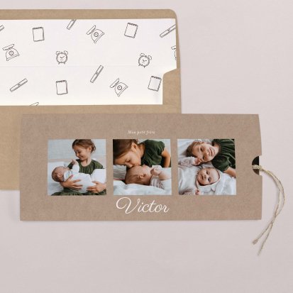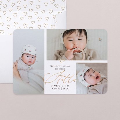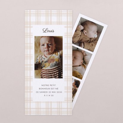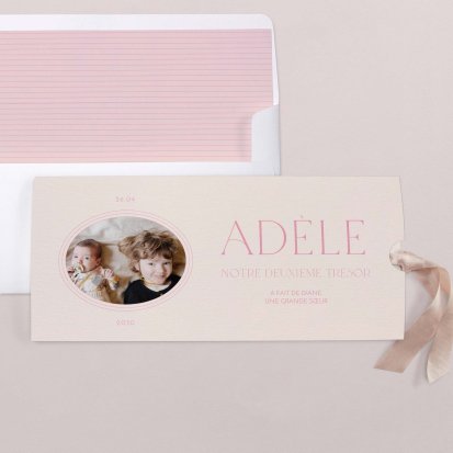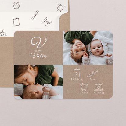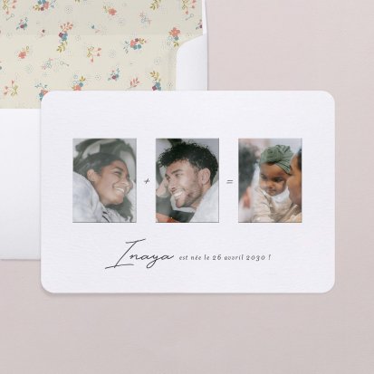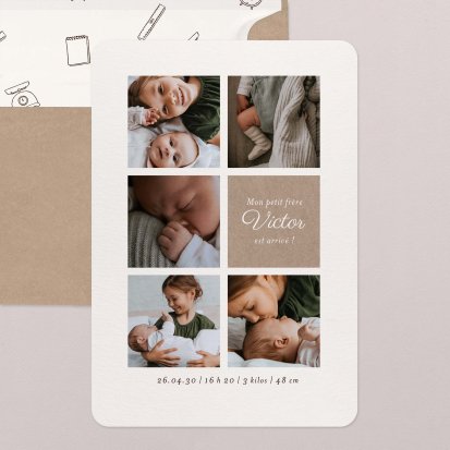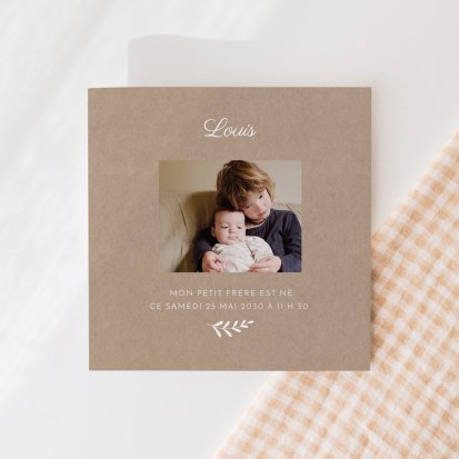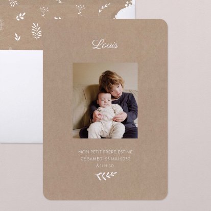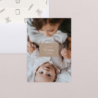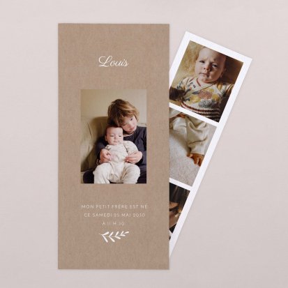 Le faire-part de naissance personnalisé s'adresse à tous les enfants : fille, garçon, jumeaux ou triplés. Vous pouvez également faire le choix d'un faire-part de naissance avec une photo entre frères et sœurs pour montrer le bonheur de l'agrandissement de la famille.
