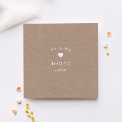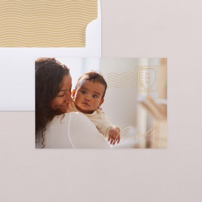 La tendance pour la papeterie de naissance réside dans des couleurs tendres et chaleureuses. Craquez pour des teintes pastel : bleu, rose, orange ou vert. Le kraft offre une touche boisée à un faire-part de naissance champêtre. Personnalisez les couleurs de votre texte pour correspondre à la photo que vous avez choisi d'imprimer sur votre faire-part de naissance personnalisé.