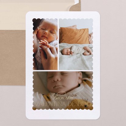 Sélectionnez le plus beau des faire-part de naissance en utilisant nos filtres de recherche. Une fois votre modèle choisi, vous pouvez passer à la personnalisation du contenu.