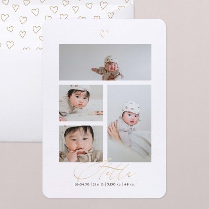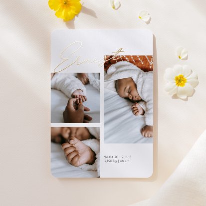 Les cartes de naissance disponibles sur notre boutique en ligne répondent aux tendances actuelles. Les parents ont, tous, des goûts différents et nous répondons à chaque envie avec des modèles variés. Découvrez notre collection de cartes de naissances pour trouver le format qui vous correspond.