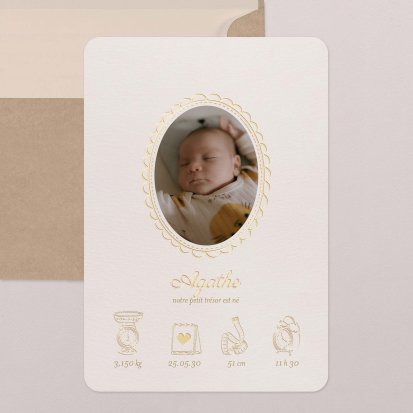 L'annonce de la naissance de votre fille ou de votre garçon prend un ton officiel avec la création d'un faire-part. Cette carte en papier à personnaliser est un souvenir qui perdure dans la famille pendant plusieurs générations. Les parents sont donc sensibles à la qualité du produit qu'ils achètent. Ils souhaitent que l'annonce de l'arrivée de leur enfant soit aussi personnalisée que possible. Le faire-part de naissance personnalisé Cotton Bird sera le portrait de votre famille et surtout celui de votre bébé.