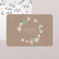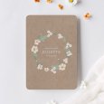Sur le faire-part de naissance Rosa Blanca - Kraft, une jolie couronne fleurie vient embellir votre heureuse annonce. Vos proches seront charmés par l’authenticité et la fraîcheur de ce modèle.