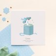 Une adorable oie sort en trombe d'un joli paquet cadeau sur le charmant faire-part de naissance Pirouette. Réalisé à l'aquarelle, ce modèle capture parfaitement la joie et l'émerveillement de l'arrivée de votre bébé.