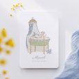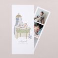 Sur le faire-part de naissance Mon petit baldaquin, panda, renne et petite souris sont illustrés dans un lit à baldaquin adorablement vintage. Un tableau poétique et enfantin qui contera, avec originalité, la naissance de votre petite fille ou garçon cette saison.