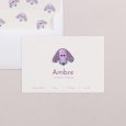 Sur le faire-part de naissance Match & Patch II, un chiot brodé de couleur mauve ajoute une touche de charme supplémentaire à votre heureuse annonce. Alliant douceur et originalité, ce modèle épuré est idéal pour célébrer l’arrivée de votre adorable bébé.