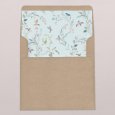 Ce faire part de naissance est une carte carrée pliée, dotée de coins arrondis pour plus de douceur. Il s'accompagne de deux étiquettes personnalisables, à lier avec un joli ruban (proposé en supplément).